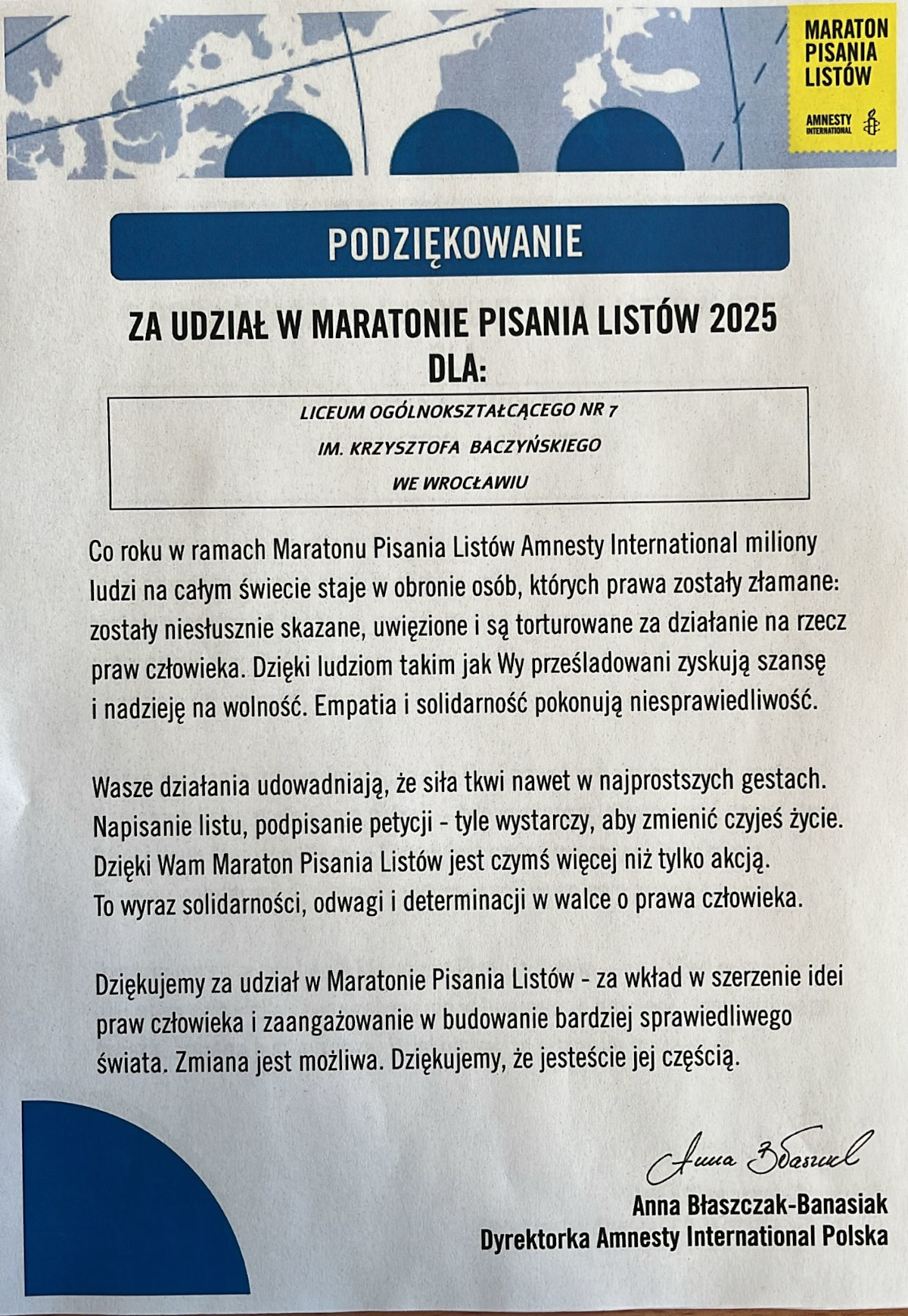Maraton Pisania Listów - w tym roku już 25 raz na całym świecie pisane były listy w obronie osób niesprawiedliwie traktowanych i osadzonych w ramach akcji organizowanej przez Amnesty International.