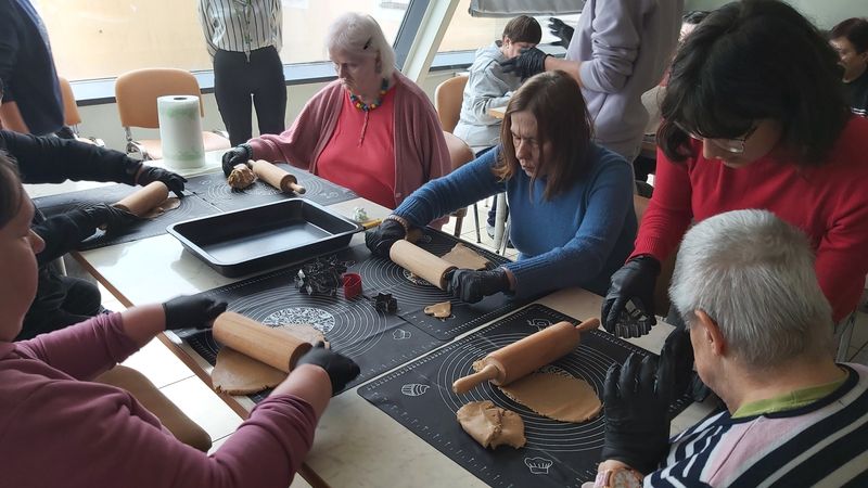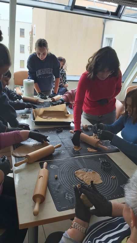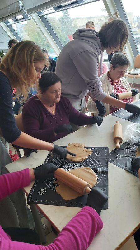 Następne wyjście 23 pażdziernika było do DPS przy ulicy Farnej. Wolontariusze pomagali paniom w zajęciach kulinarnych. Wspólnie wałkowali i wycinali oraz piekli pierniczki, które później trafią na kiermasz. Te wspólne działania przyczyniły się do rozwoju umiejetności współpracy, komunikacji. Wzmacniły też postawy społeczne, uczą cierpliwości i szacunku.