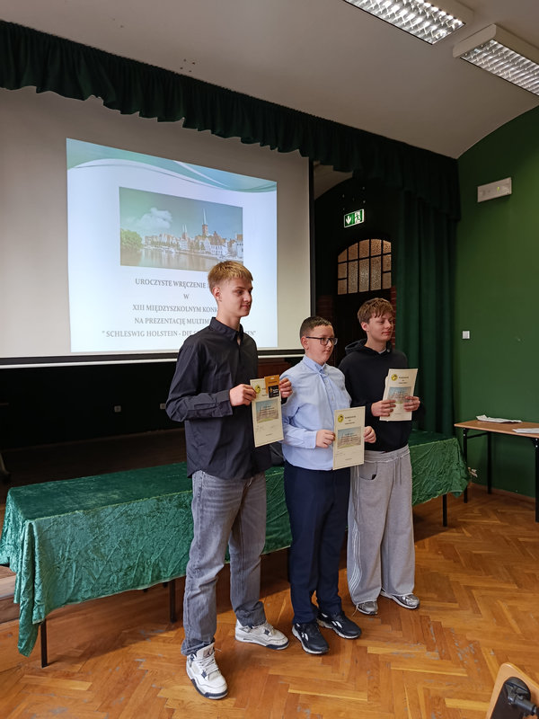 W czwartek 09.04.2026r. w auli naszego liceum odbyło się uroczyste wręczenie nagród w XIII Międzyszkolnym Konkursie na Prezentację Multimedialną: „SCHLESWIG HOLSTEIN – DIE SEHENSWȔRRDIGKEITEN”.