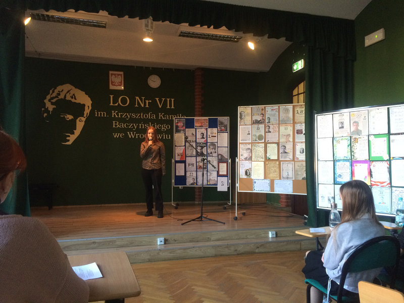 W czwartek, 22.01.2026 r. w auli LO nr VII im. K. K. Baczyńskiego we Wrocławiu, na zakończenie Dni Patrona, odbył się VII Międzyszkolny Konkurs Recytatorski „Poezja Pokolenia Kolumbów”.