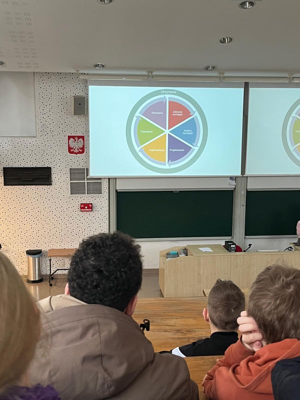 We wtorek 31 marca 2026 roku po raz kolejny odbyły się zajęcia z informatyki, przewidziane w ramach współpracy naszej Szkoły z Politechniką Wrocławską.