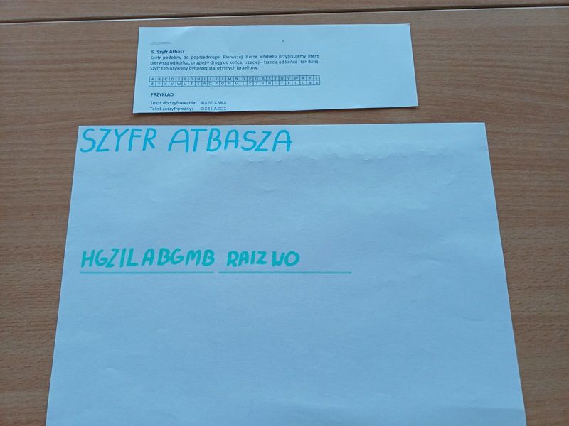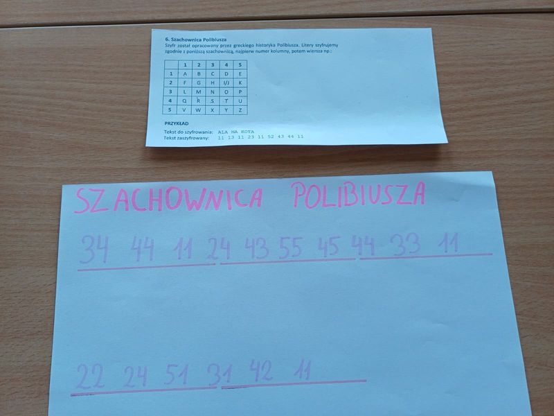Odwiedzająca nasze liceum młodzież mogła uczestniczyć w łamaniu szyfru Cezara, Atbasza, a także szyfru opracowanego przez greckiego historyka Polibiusza.