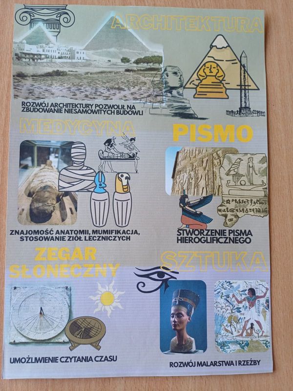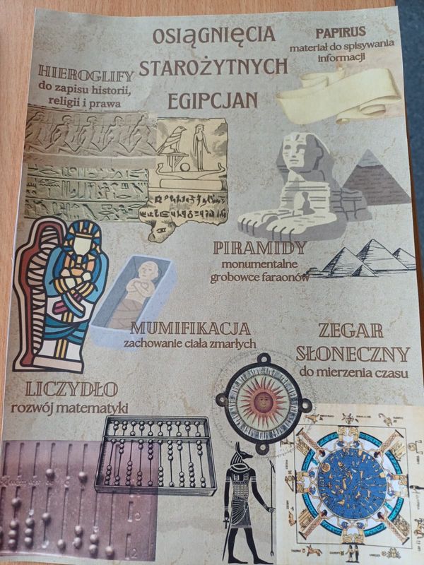 Odwiedzający mury naszej szkoły mogli zapoznać się także z wybranymi w postaci kolaży pracami naszych licealistów. Prace te dotyczyły osiągnięć starożytnych Egipcjan, osiągnięć w naukach ścisłych, przyrodniczych i medycznych na przestrzeni wieków.